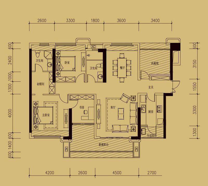 • 依雲天匯B01戶型 3室麵積155.00平米