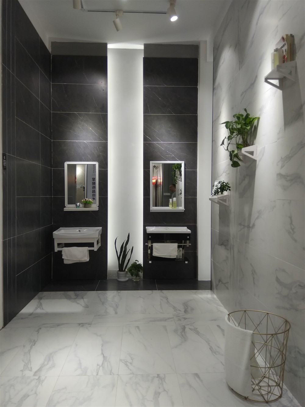 這是91看片的免费的网站陶新款的廚衛噴墨瓷片,卡拉卡白元素的瓷片優雅,非常適合現代風和輕奢風的91APP免费看片。