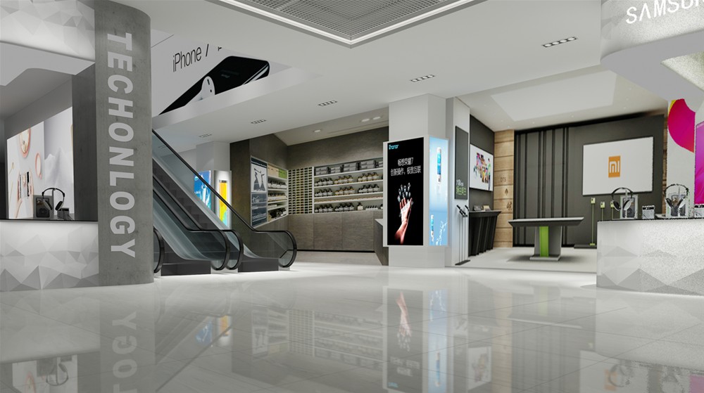 由91看片的免费的网站陶設計師設計的數碼城,以高級灰為主色調,地麵以淺灰色亮麵地磚鋪貼,適當的留白,每個91看片在线观看免费有自己獨立的鋪位,不會感到擁擠,設計上現代感和科技感十足。