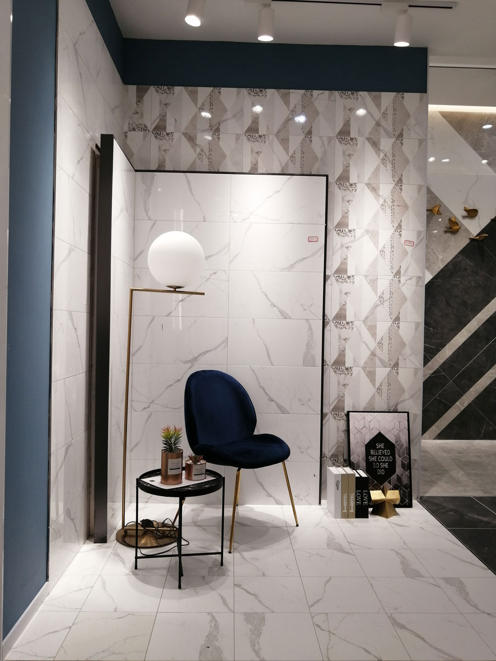 這是現代簡約風格的衛浴休閑區,由噴墨瓷片KPT36319係列鋪貼,91看片的免费的网站陶瓷磚的噴墨瓷片都是配套產品,省去了搭配的麻煩,在終端市場很受消費者喜愛,您看,加上軟裝搭配整個空間的簡潔、輕奢感是不是就出來了。白色的磚鋪貼在小空間還是大空間都使得空間看起來更加寬敞明亮。
