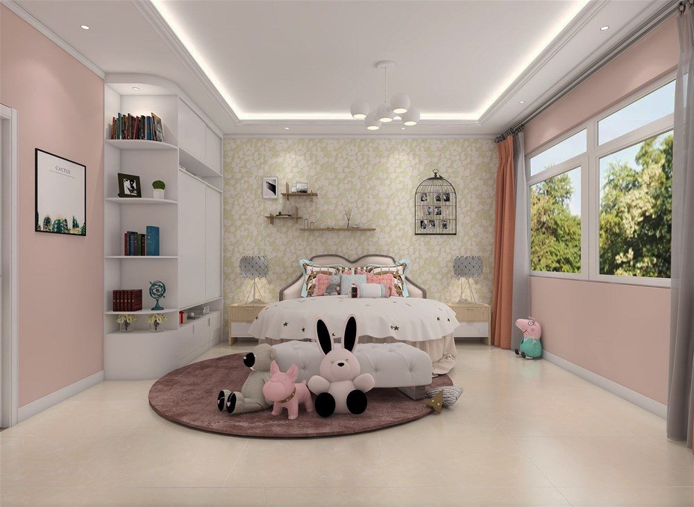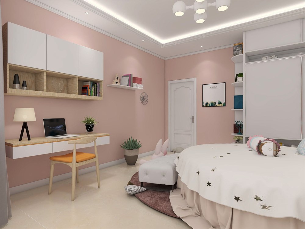 粉色的壁紙營造出粉嫩可愛的氛圍