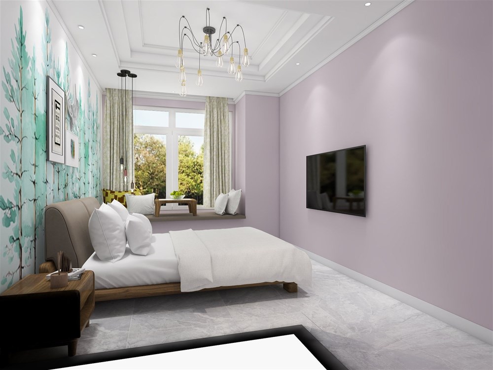 粉色牆紙與綠色樹木圖案牆紙
