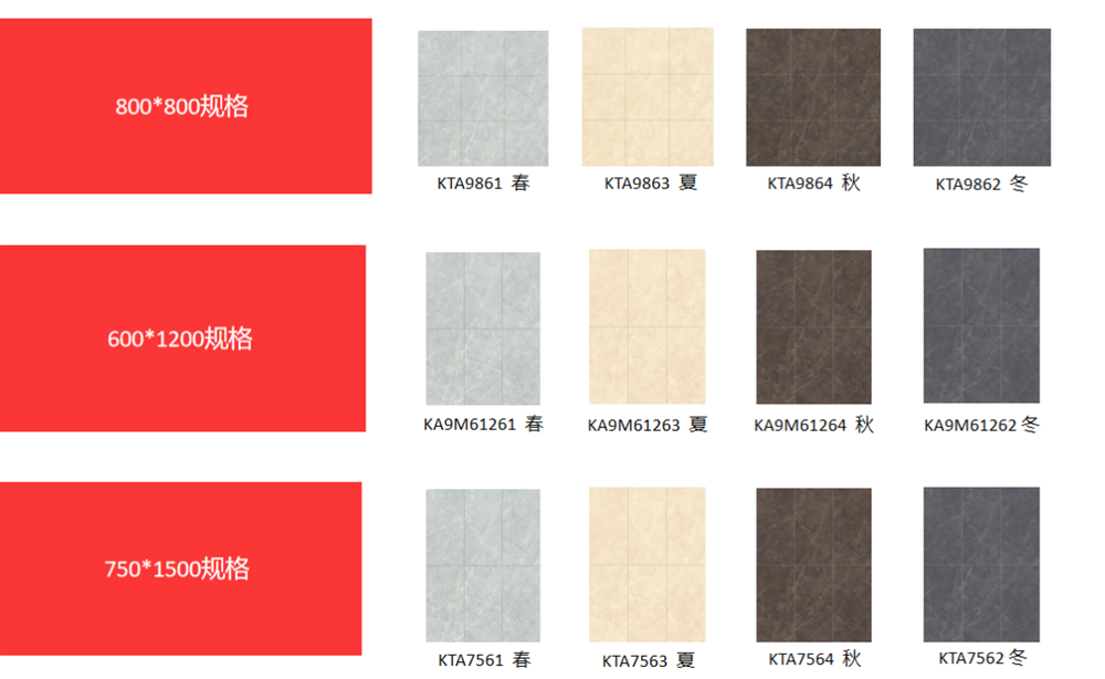 三個經典規格 橫跨800*800,600*1200,750*1500三個規格,上牆下地無所不能,滿足不同的家居場景