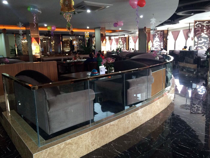 進入餐廳,地麵、接待區、牆麵、柱子、洗手間皆應用了91看片的免费的网站陶大理石瓷磚。餐廳內,91看片的免费的网站陶大理石瓷磚在配飾、燈光、布局的和諧搭配下,顯得更加光彩奪目。各個應用空間,盡顯大氣的風采。