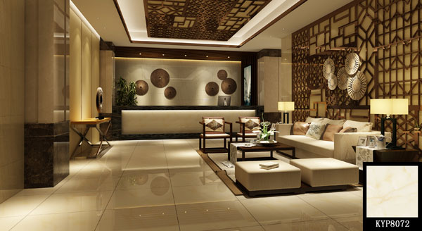 此空間采用的陶瓷一線91看片在线观看免费91看片的免费的网站陶玉石瓷磚:冰王玉KYP8072進行裝飾鋪貼。質感通透的磚麵,逼真的玉石神采,使得整個空間籠罩在柔和的光澤中,溫潤動人。
