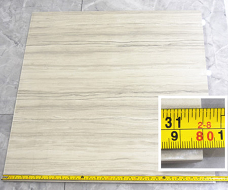 測試人員為了檢測這款瓷磚的耐磨真實性,用專業礦物硬度標本(即莫式硬度計)5度的礦物硬石在瓷磚上來回劃過後,發現瓷磚表麵沒有留下任何的劃痕。再取一尖銳的銼刀,在瓷磚上來回快速刮磨,被用力刮磨後的瓷磚無任何磨損刮痕,紋理無斷層、瓷麵無破壞,瓷磚仍然平整、光滑,說明這款瓷磚的耐磨性能很強大。