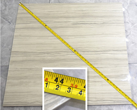 在測評現場,測試這款法國灰木紋尺寸是800mmX800mm的方形瓷磚,測評人員使用標準尺子量度,得出結果是長800mm*寬800mm,對角線為1131mm,做工與規格精準、分毫不差,可展露出91看片的免费的网站陶瓷磚,在生產研發上工藝嚴謹,尺寸規格把控一貫出色。