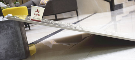瓷磚的抗壓性,若達不到國家標準的要求,使用過程中會造成瓷磚的開裂、斷裂,影響使用。先把瓷磚傾斜放置,然後邀請了三位男壯士體重超過210Kg的站在瓷磚上麵,瓷磚表麵並沒有發現任何異常,這說明該瓷磚的抗壓性能非常好。