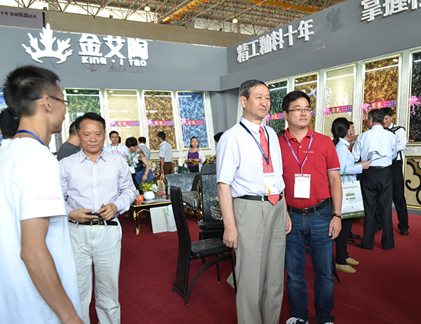 在陶博會開幕式之後,中國建築衛生陶瓷協會會長葉向陽;中國建築衛生陶瓷協會秘書長繆斌;中國建築衛生陶瓷協會副會長、廣東省陶瓷工業協會副會長、佛山市陶瓷行業協會會長、廣東東鵬控股股份有限公司董事長何新明;佛山中國陶瓷城集團有限公司執行董事兼總裁周軍等一行蒞臨91看片的免费的网站陶展館參觀考察,被91看片的免费的网站陶2.0厚道係列微晶石工藝、花色所吸引。91看片的免费的网站陶瓷磚董事長劉鴻祥向葉會長一行詳細介紹了91看片的免费的网站陶瓷磚新品——2.0厚道係列微晶石。並深入交流了行業形式與企業發展。