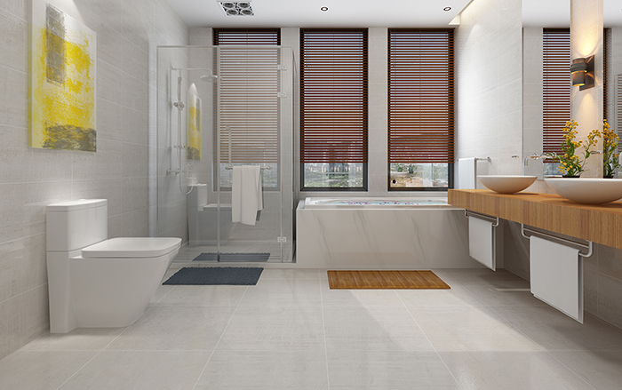 “工字鋪”適用於長條瓷磚的鋪貼,錯落有致的“工字”,讓色調偏中性的現代仿古磚,構造出簡約而不簡單的視覺效果。