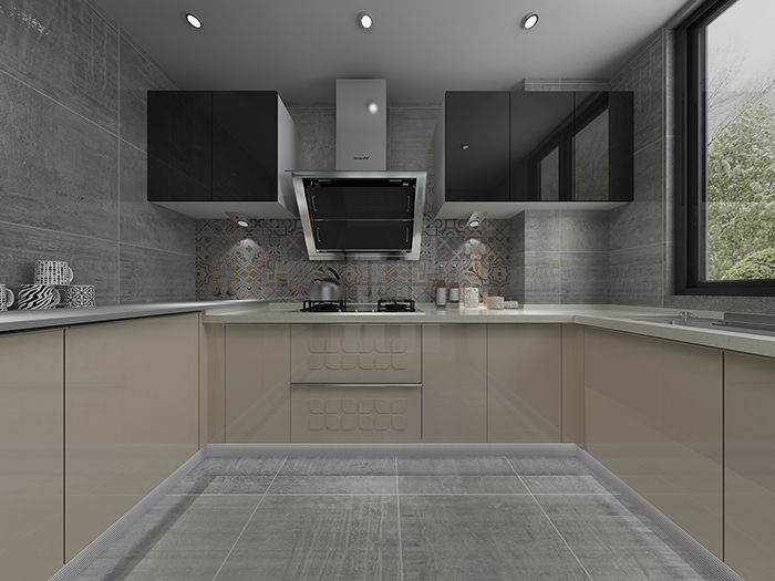 紋理簡單的現代仿古磚,切割方便,以混鋪方式加入花磚等不同的元素,勾勒一個跳躍、靈動的視覺空間,絕不會讓人覺得乏味。