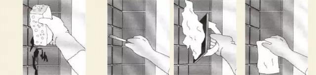 茶水和咖啡及啤酒或冰激淋等汙染物,可使用氰化鈉或碳酸氫鉀溶液,各種膠可以用香蕉水祛除,因為純香蕉水是無色透明易揮發的液體,能溶於各種有機溶劑,主要用作噴漆溶劑和稀釋劑;磚與磚縫隙處可以不定期用去汙膏清洗,再在縫隙刷一層防水劑,可以防止黴菌的生長,還有就是要記住兩到三個月應打一次蠟,以作保養。