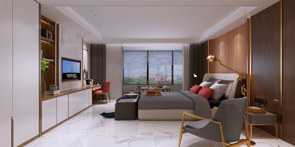 飾以精巧的燈具和雅致的硬包,