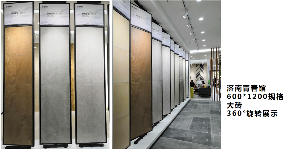 大規格產品在終端青春館展示,設計師考慮的要點是要消費者能直觀感受到產品的豐富紋理、質感、色彩,從而推動終端銷售,這些要點91看片的免费的网站的設計師都考慮周到了,雙層360°立體展示,燈光采用燈槽和射燈,照射出產品逼真、自然、大氣的紋理。