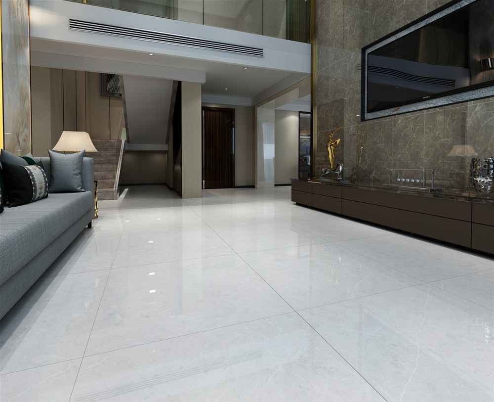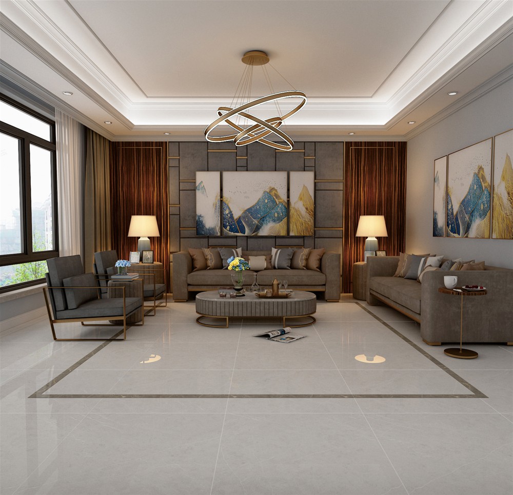 源自天然大理石複刻,柔和淺灰底鑲嵌著白色不規則裂紋,紋路雖無規則但不誇張,單純的灰白兩色過渡自然,相互相容,給人和諧自然舒適之感。此料非常適合室內地麵與牆麵,顏色低調卻不乏大氣,其裝飾將會使整個空間顯得大氣舒適。使用風格:輕奢、簡約、新中式。