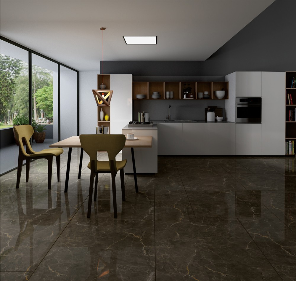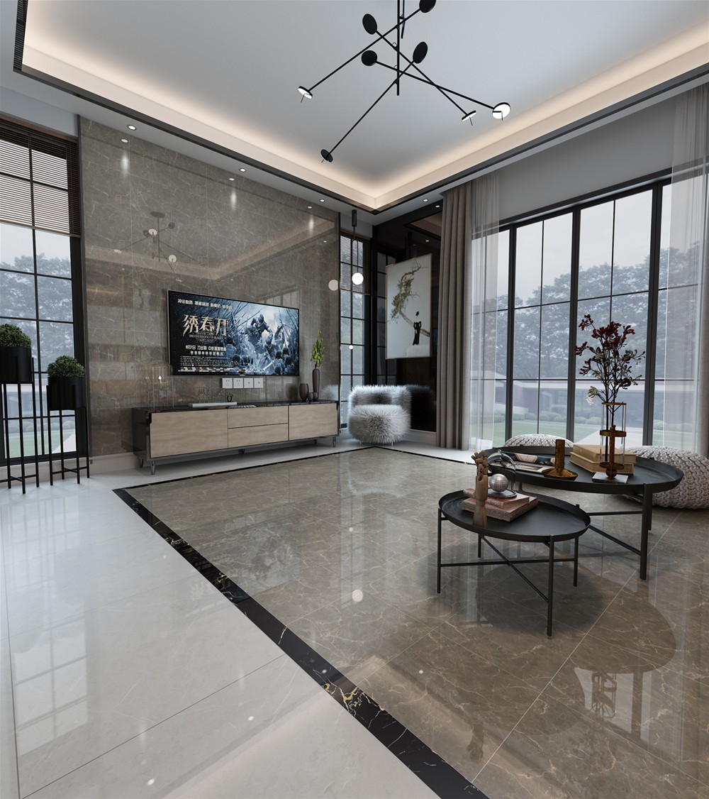 采用名貴天然石材,通過獨特的平網印花工藝,純正還原名石表麵色澤,簡潔的深咖色調搭配棕色網狀石紋,穩重大氣不失靈動,細膩的紋理泛著通透輕盈的光澤。適用風格:輕奢、簡約、新中式。